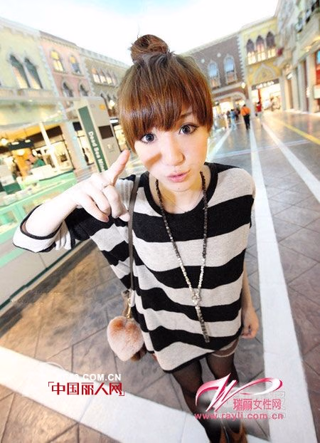 圆领宽条纹针织衫,很显大气的一款哦!让你魅力无限!