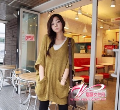 芥末黄色的毛衣裙!很衬肤色哦!非常的甜美!