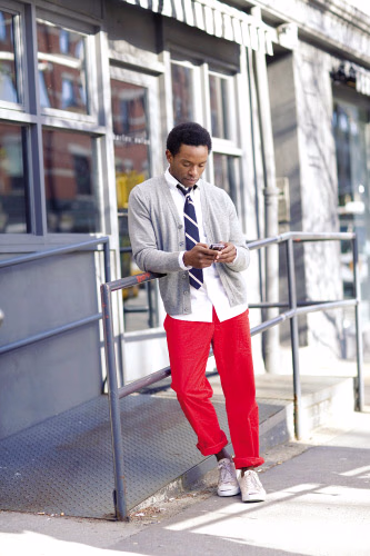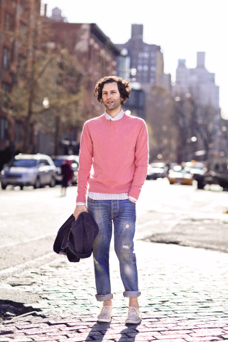 无论是模特的秀场演绎,还是场外的各色街拍型男,一切迹象都表明卷边裤绝对在这一季红透半边天。卷边裤散发着轻松自在的雅皮气质,所以卷得越是自然随意越好。宽松的上衣搭配卷边裤,让潮男们多了几分帅气、自信和洒脱。卷边裤本来强调的就是一种休闲随意的感觉,所以宽松的裤管折起裤脚,配上T恤、衬衫或针织衫,不管是上班的白领一族还是时尚中人都可以成功演绎街头最具型格潮的男范儿。