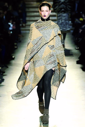 2010/2011秋冬的厚重针织着装时尚一般被演绎为像是奶奶制作的复古风衣、毛衣裙和外衣。当它们和流行的单件搭配时,就呈现出了完美的结构和时尚的外观。这些针织组合往往带着“邋遢”时尚、都市时髦或者极简主义的风格。在我们这个时代的两位值得敬仰的设计师品牌——米索尼(Missoni)和D&G在它们的2010/2011秋冬系列将针织时尚的幻想带到了T台之上,展示了一些经典的、“必须拥有”的厚重针织设计。