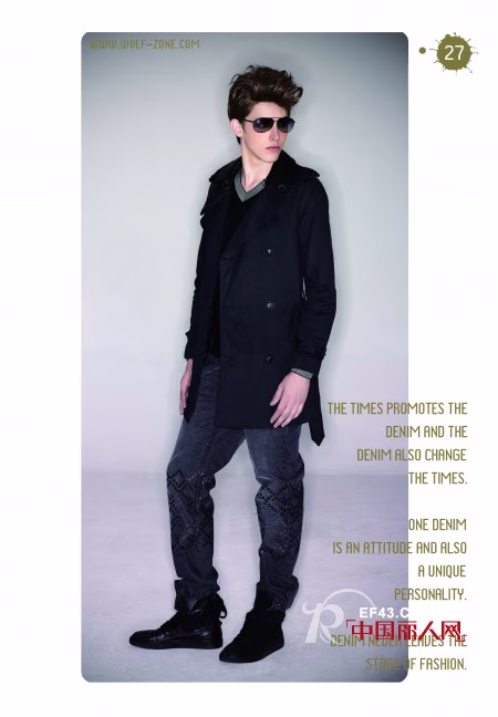 伴随着时尚潮涌般的侵袭和推动,狼道WOLF ZONE牛仔本着个性时尚,不拘一格,贴近生活的原创设计风格,创造汇集着符合当代男士18-35年龄段穿着品味的各种潮流风格男装,冲击着人们对审美视觉的感官,逐渐发展成为东南沿海地区及祖国内陆主要城市倍受时尚人群所认知的“中国设计师原创品牌”。在品牌林立的当今市场,狼道服饰步步为营,不断的在书写着一段段令人惊叹的“传奇”。