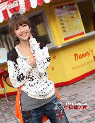 黑色斑斑点休闲长T,就像泼了墨水似的,很潮很休闲哦!