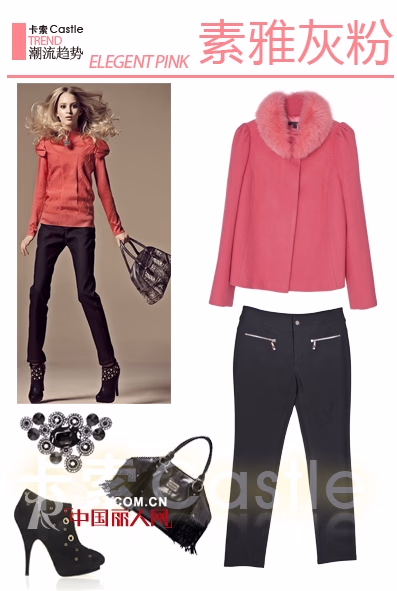 2、甜美的粉色为冬日带来春的温暖,搭配可爱的百褶裙,散发如珍珠般的迷人光彩。