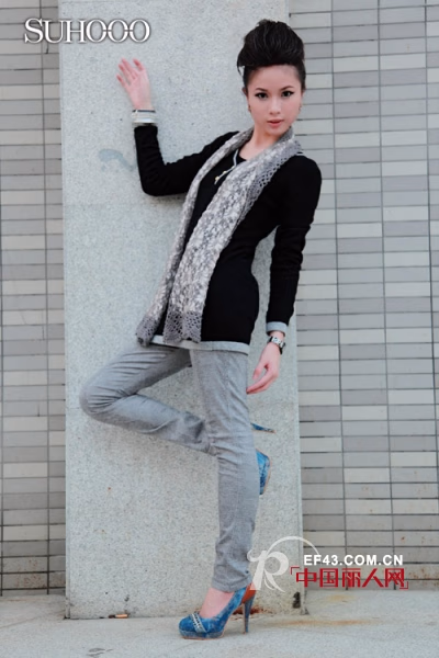 (SUHOOO)精典黑灰柔软兔毛针织衫