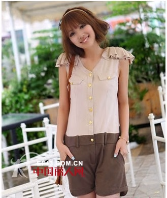 垂感非常好的一款韩范儿连体裤,非常合身的修身版型让你的身形更协调,V领设计修正拉长脸型,强调肩部的设计项目是本季的主流,褶皱的肩章造型很有军装风格的气息,金色扣子,连体裤造型,无一不是今年最Fashion的元素。