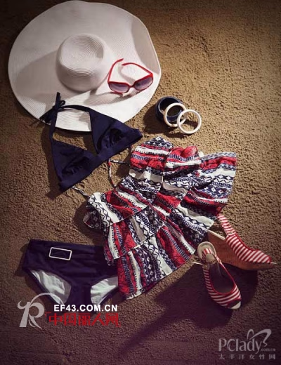 搭配建议:红色与蓝色的组合,永远都是诠释海洋风的最佳搭档。不想要比基尼完全暴露了你腰部的赘肉肉,层叠的蛋糕吊带衫看起来会很不错。别忘了挑选一定白色宽沿儿草帽哦!