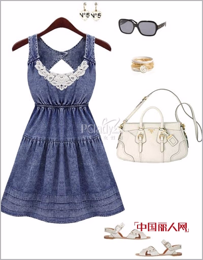 背部巧妙镂空的牛仔背心裙,令牛仔散发从未有过的俏丽,蕾丝的运用令款式不再单调,变得可以性感,可以休闲,可以甜美。
