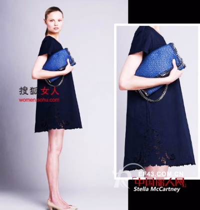 连衣裙不仅“迷你”,还设计成了宽松的A字形。为此,那些蕾丝面料也同挺括棉布一样被处理得很硬挺,从侧面看,这些裙子很有建筑感。
