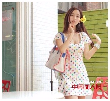 时尚点评:五颜六色的波点裙被视为减龄的最佳图案,但是大大的领口不仅衬出一张小脸,还散发出了不少性感女人味。