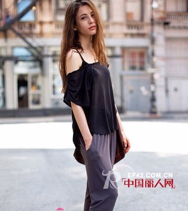 时尚松垮哈伦裤让你的双腿线条被忽略看不出粗细,露出纤细的脚踝搭配一双古典的高跟鞋,森林范十足,一件黑色露肩上衣更是锦上添花。