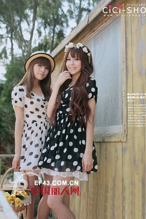 日本VIVI杂志水玉波点雪纺连衣裙!