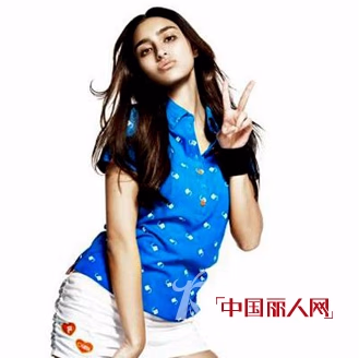 宝蓝色的运动波点polo衫看上去无比清爽,搭配白色小短裤,清新的感觉犹如邻家小妹,更加显得年轻无极限。