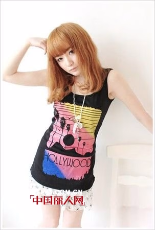 甜辣气息浓重,小背心上的椰树图案,休闲度假感觉油然而生!