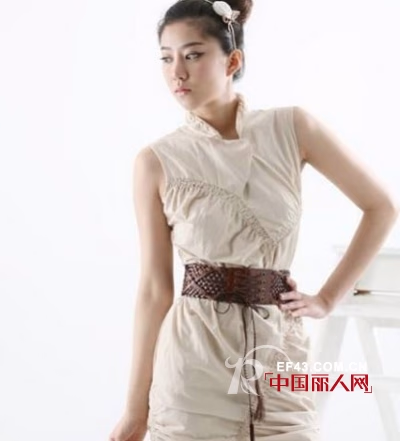 注:编织的腰带同样带出轻松的感觉,很有亲和力。卡其色漆皮编织腰带的简洁设计可以和简约裙装搭配,高贵典雅,出席商务派对,这种装扮足以引来艳羡的目光。