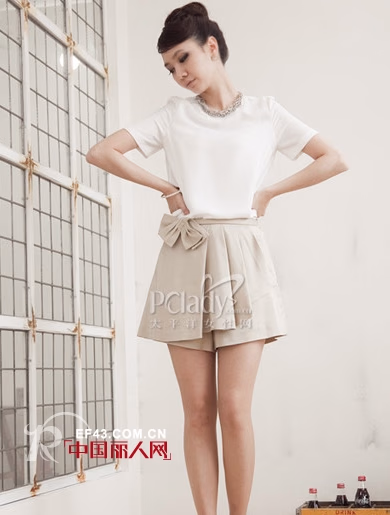 简单的白T搭配裙状短裤,简繁搭配,支撑起名媛般的气质。