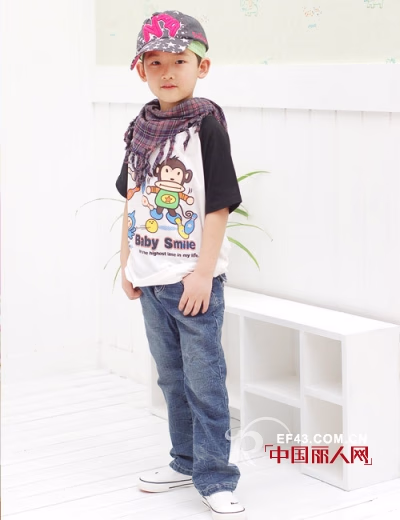 卡通T恤+围巾+鸭嘴帽,很时尚可爱的搭配,围巾是点燃全身最时尚的亮点