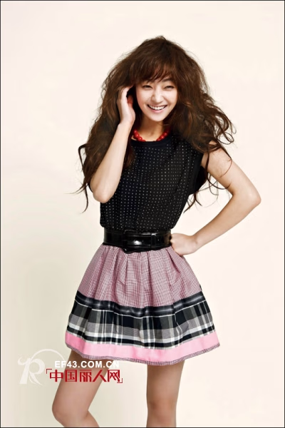 整套连衣裙的亮点上半身的波点格子设计和那跟黑色款腰带,很好的展现了玲珑腰身。