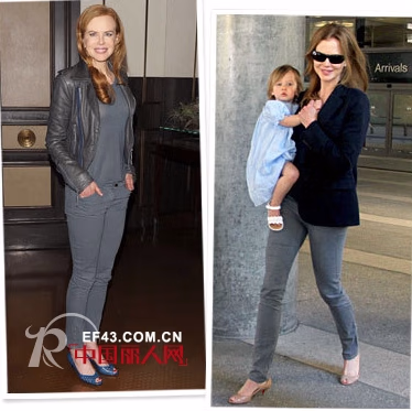 谁说牛仔裤必须是蓝色的?Nicole Kidman(妮可·基德曼)非常喜欢她的灰色牛仔裤。这位澳洲性感辣妈喜欢穿上紧身的灰色牛仔裤搭配绚亮的蓝色高跟鞋和机车夹克。