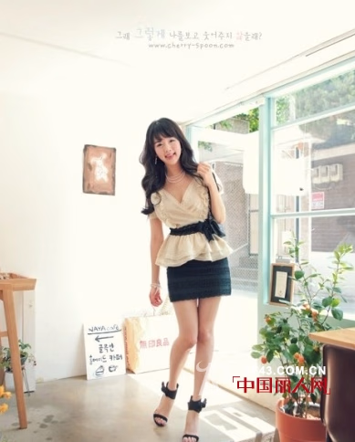 整体用简单的黑白两色打造知性的感觉,鞋子与短裙的呼应衬托让双腿更显白皙,脚腕处的绑带更是显瘦的法宝!