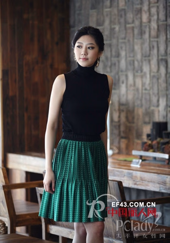 编辑点评:黑色樽领无袖针织衫,本来就是优雅的最佳诠释者,展现手臂柔美线条之外,还可以隐约展现颈部的修长线条。绿色小圆点半身裙,没有其他修饰,反倒显出精致感。搭配条式长耳环,可以让造型变华丽。