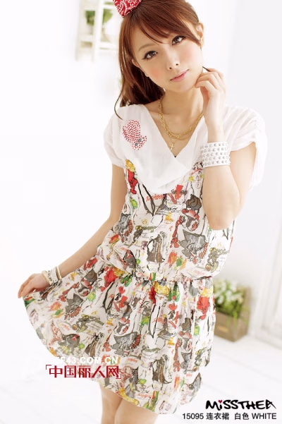 不要再穿太素色的衣服拉,蜜西娅时尚品牌女装告诉你今季流行的可是花色的衣服哦!来欣赏下这款YY吧,图案上的花色有点类似随手的涂鸦,洋洋洒洒的遍布衣身,整体看起来有种凌乱美,肩头甜美烫钻十分抢眼,整个夏天,你都将是焦点哦!