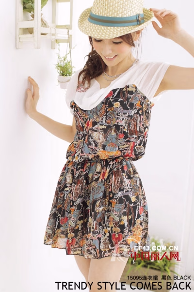 蜜西娅时尚涂鸦图案连衣裙 重色版
