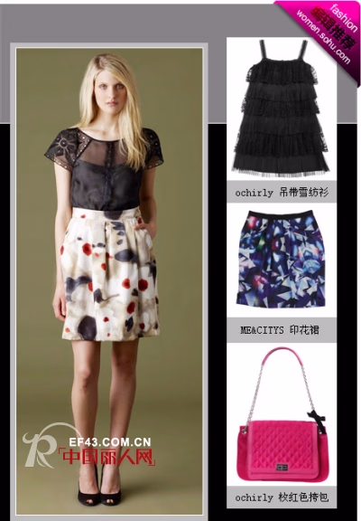 时尚解析:充满复古风情的黑色透明衬衣,营造出摩登复古的时髦形象。动感的印花裙衬托出你的性感妩媚。这样的款式展现出女人淑女、柔美的一面。