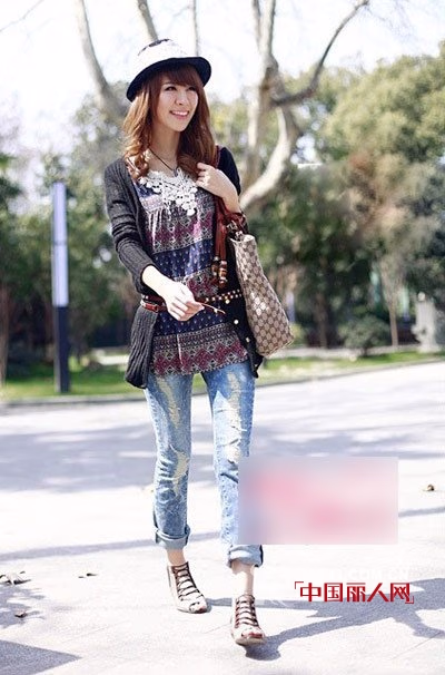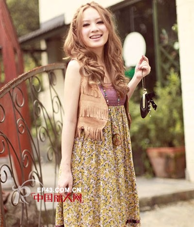 迎春花般的碎花图案映衬着驼色流苏马甲,带来异域风情。选择民族感的陶制项链或银器配链,是提升搭配整体度的秘诀。