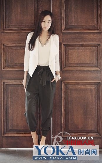 O型腿与X型腿在夏天切记不要穿太贴身的裤装,宽松垂坠感的9分裤最适合。上松下窄的设计能很好的掩饰不完美的腿型,黑白相配的组合也适合办公室的OL,优雅又清爽。