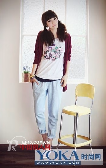 在假日时,T恤与仔裤是大家最常选择的搭配。O型腿与X型腿的MM们同样要注意,最好选择宽松式的牛仔九分裤,将裤腿随意挽起,更能显腿直。