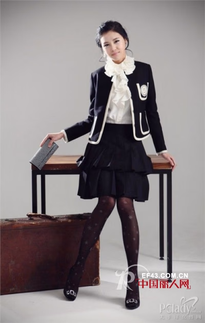 时尚点评:黑色与白色是永恒的流行色,纯黑色的衣身加上白色粗线缝制点缀,整套上衣马上体现欧洲式的优雅质感,修身的剪裁凸显女性玲珑曲线,领口的设计可以使上身曲线更玲珑。