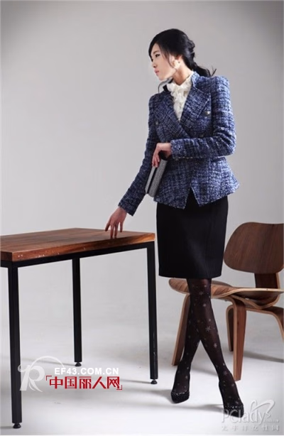 时尚点评:蓝色混针织的外套在这个冬天绝对让你出奇制胜,西装式的版型剪裁,很有帅气的干练气质,双排扣的设计更是加深视觉印象,优雅中不失职业感,搭配短裙和丝袜,绝对让你成为办公室最吸引眼睛的装扮。