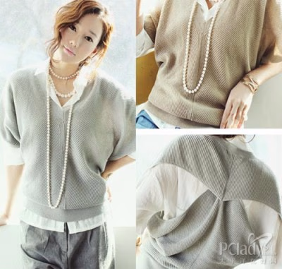这款针织衫以浅色系作为整体的色调,宽松的设计带点蝙蝠衫的味道。从正面来看,这款针织衫富有甜美气息,而从背面来看,又个性十足。非传统的设计让人印象深刻,让你穿出属于你自己的甜美气质。