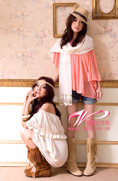 西瓜红色的雪纺像沙冰一样甜美搭配卷边牛仔短裤,流苏小靴与同色系中折帽相呼应,带来清新田园气质!