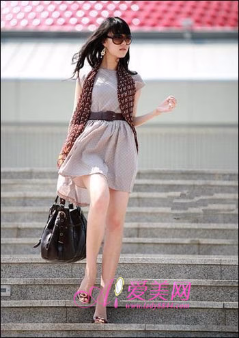 简洁的色彩配上咖啡色的丝巾,绝对是追求精致淑女的OL们的最爱。这个时候,精致的妆容和完美和谐的高跟鞋也是很必要的。