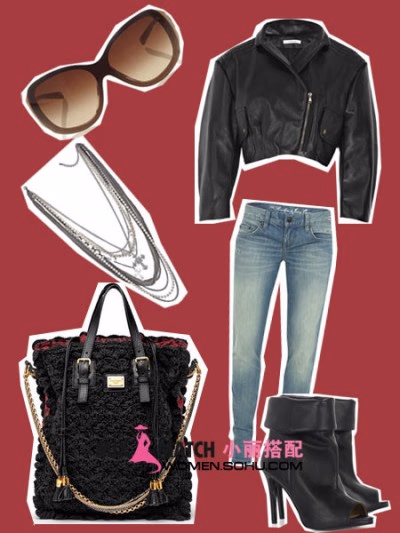 搭配建议:短款夹克一直以来都是潮人们的最爱,简约有型还容易搭配,配对水洗仔裤营造出复古的个性。夸张项链和及踝靴都不能缺少。