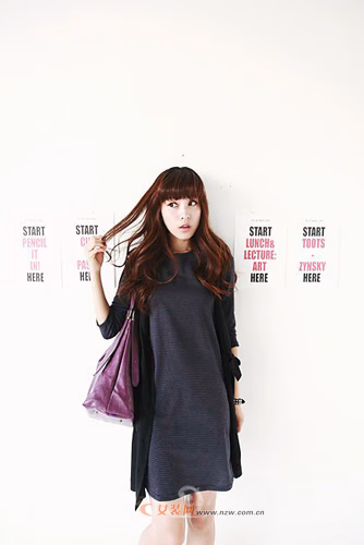 时尚点评:设计简约的灰色one-piece连衣裙单穿着可能会有点单调,外搭一件轻薄的黑色长外套就让整个搭配立刻产生化学作用,随身背上一个紫色的包包,抢眼之余还很有女人味哦。