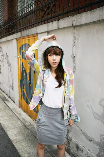 时尚点评:粉粉的颜色晕染出美丽的感觉,非常有少女味道的外套足够让各位MM一见钟情,白色的上衣搭配灰色的半截裙充满了青春气息,再加一件如此好看的外套,让整个搭配洋溢着活力与生机!