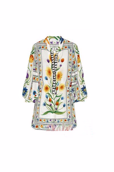 复古的设计,中式中采用了印染的大花,刺绣的民族风正流行于当季。