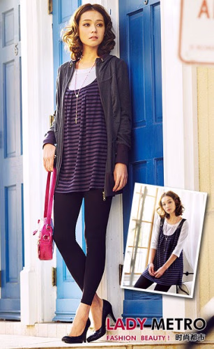 带点运动风格的长款外套是春日里最实用的单品,容易搭配也保暖,条纹的娃娃衫可以做连衣裙搭配上黑色的9分裤袜如果身材比较丰满的女生这样穿能苗条不少。