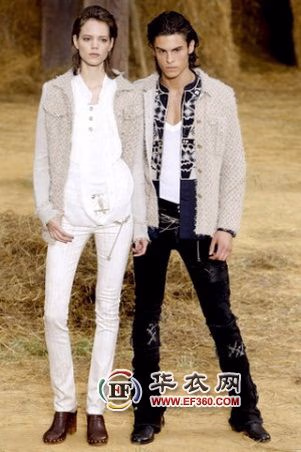 D&G 本季出现了大量牛仔时装,设计师用心良苦地拿半透明蕾丝衬衫搭配泛白的牛仔热裤,这样一来年轻人们也很难抗拒这种性感的穿法。Ralph Lauren 的浅蓝色衬衫十分巧妙,虽是常规牛仔衬衫的款式却具有透视感,与下半身破洞牛仔裤中和出摩登的牛仔套装感。牛仔与真丝从字面上来看就已经有了“互相扶持”的作用,丝绸用来软化丹宁布的“邋遢”感和工匠气,使整身造型看起来不会显得那么街头。而牛仔布则负责增加更多年轻气息,谁说只有成熟白领女性才能穿丝绸?丝缎的柔软与牛仔布硬朗的质地亦有强烈反差,Chanel 本季春夏伸展台上,设计师让模特Freja 与男模穿情侣款式的高腰直筒牛仔裤,Freja 那条看起来没什么特别的牛仔长裤上面是一件纯白半透视花边丝缎衬衫,顿时显得浪漫且女性化,而同时男款衬衫的面料相应改成了棉布。