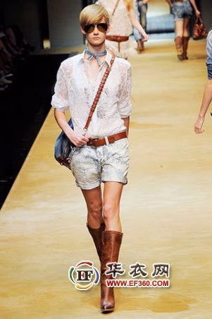 设计师用心良苦地拿半透明蕾丝衬衫搭配泛白的牛仔热裤