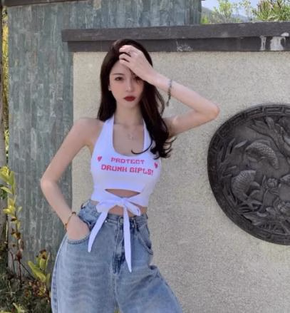 这一身妥妥的辣妹,白色的背心能够很好的展现修长的手臂以及完美的肩颈线条。腰部的系带设计凸显了小蛮腰,盈盈一握的感觉让男人很着迷。加上宽松的阔腿裤,休闲又时髦,非常显身材的一身打扮。