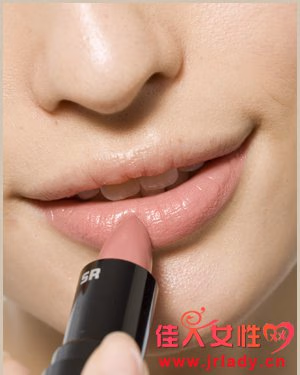借助唇刷、手指或用唇膏直接涂在下唇上,其原则是:如果选用了比较轻淡的中性色唇膏,就不需要用到唇刷;如果选用了与你原本唇色对比较为强烈的唇膏如:鲜红、酒红、枣红等颜色的时候,就需要唇刷的辅助,它能够让你更均匀、精确地涂上足量的唇膏。