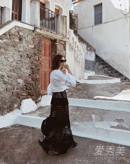 长款衬衫裙也是本季必备单品,衬衫的款式裙子的质感,遇上浪漫的海岛风情更是养眼,透视长裙+头巾满满的度假感。