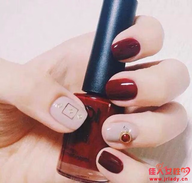 没错,就是酒红色!今年特别流行酒红色,无论是衣服还是美甲,酒红色都能打扮的非常洋气。