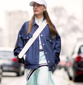 夹克+雪纺裙,天气微凉的时候一款夹克外套最耐看了,加上雪纺裙更是少女感十足,浅色仙女裙配绑带球鞋,出街动感活力,很显朝气的一款搭配,适合学生妹或是年轻妹子的出游穿搭。