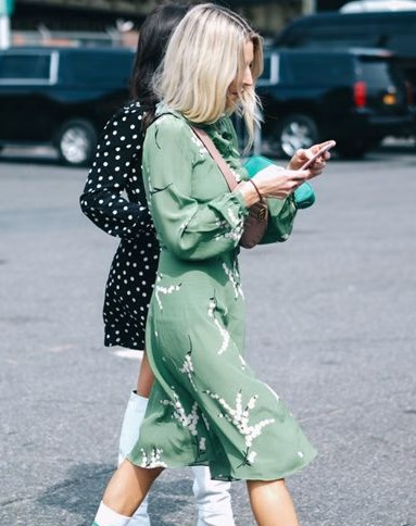 初夏天气刚刚开始变热,一下子就开始穿凉鞋,好像还是有点太快了,推荐大家试试运动鞋+仙女裙吧,夏天到了都是要穿裙子的,和运动鞋组合让你轻松度过换季尴尬期。这种印花风格的连衣裙,和小白鞋搭配清新养眼,搭配条纹中长袜增添几分少女气息。