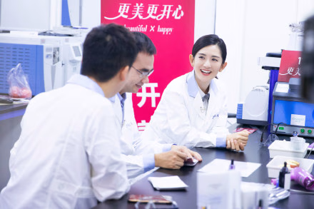 自然堂品牌成立于2001年,属于伽蓝集团旗下,曾连续在双11成为美妆国货品类的第一名!去年双11一天的销售额就达到了5.33亿元!在这背后是自然堂引以为傲的科技力,伽蓝集团每年会将利润的4%-4.5%投入到产品研发中去,在同类的国内品牌简直少有!作为自然堂的代言人,当然要对喜欢自己的粉丝负责,要对自己代言和使用的产品有更深的认识,所以她和刘维穿上了白大褂和自然堂的研发博士一起参观体验了自然堂的研发中心!