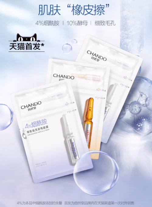 在直播的最后当然推荐的是真安瓶面膜!这个面膜是真的不一般,首先是含有4%的烟酰胺,它能够提亮肤色。其次非常重点!这款面膜的材料和市面上一般的面膜不一样!用的可是海藻纤维制作的。直播中自然堂的邹博士用海藻纤维膜布和一般膜布分别浸入蓝色的硫酸铜溶液再拿出来,结果海藻纤维膜布吸附了更多的蓝色,为什么?我们的皮肤平时暴露在空气中会受到看不见的重金属尘埃的伤害,用蓝色硫酸铜溶液来模仿平时重金属对皮肤的伤害,由于海藻纤维吸附能力非常强,能够吸走更多的重金属物质,所以海藻纤维膜布更蓝!而超强的吸附力更柔软贴合肌肤,让精华渗透进皮肤,用后能够使皮肤白皙透亮,柔软有光泽。